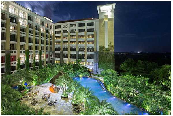 雷州樟樹灣大酒店由廣東樟樹灣經(jīng)濟發(fā)展有限公司投資并經(jīng)營管理的一家五星級商務(wù)度假酒店,座落于湛江雷州市風(fēng)光旖旎的白水溝湖畔,占地面積3、2萬平米,建筑面積9萬平米,毗鄰規(guī)劃中的市政府新的行政辦公中心,是國內(nèi)唯一以鼓文化為主題的旅游主題酒店,珍貴的北京奧運“缶”也將成為酒店的重要裝飾。 酒店距湛江機場僅需45分鐘車程,離著名的濱海風(fēng)景區(qū)赤豆寮島50公里,市內(nèi)文化古跡雷祖祠、三元古塔、雷州西湖及新博物館近在咫尺。
