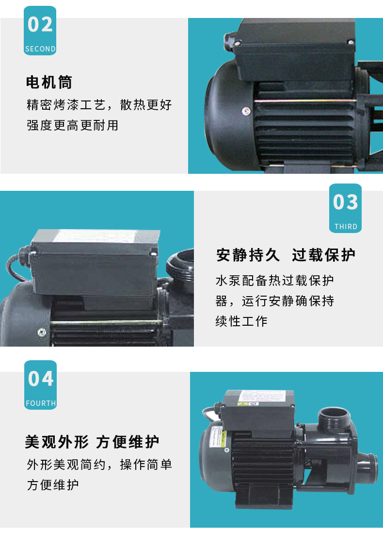 WB系列浴池旋流泵(沖浪浴缸泵),泵殼、泵座、葉輪均采用高強(qiáng)度纖維塑料。泵軸為優(yōu)質(zhì)不銹鋼,機(jī)座為鋁合金,配優(yōu)質(zhì)機(jī)械密封。單相馬達(dá)配備熱保護(hù)器,可長(zhǎng)時(shí)間連續(xù)運(yùn)行。配氣動(dòng)開(kāi)關(guān)控作,確保使用方便安全。當(dāng)馬達(dá)關(guān)閉時(shí),泵內(nèi)液體即迅速自動(dòng)全部排出。另配有缸水保護(hù)器,適用于漩渦浴池及水力按摩浴池等用途。