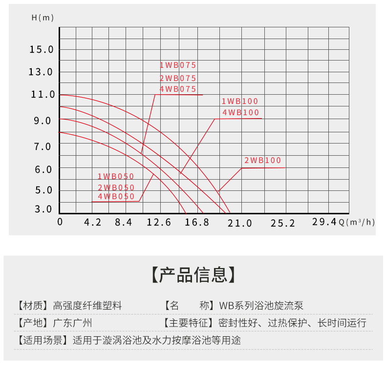 - WB系列浴池旋流泵(沖浪浴缸泵),泵殼、泵座、葉輪均采用高強(qiáng)度纖維塑料。泵軸為優(yōu)質(zhì)不銹鋼,機(jī)座為鋁合金,配優(yōu)質(zhì)機(jī)械密封。